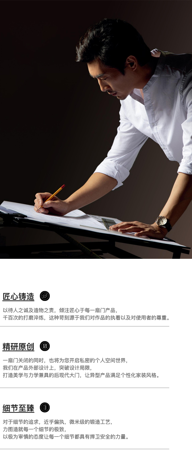 浙江鴻奧凱門業有限公司秉承“奢于門·精于心”的理念,“精益求精、盡善盡美”的態度,專注每一個細節,專屬定制每一個產品。